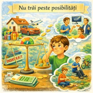 Principiul 9 Nu trăi peste posibilități Un copil trebuie să învețe că a cheltui mai mult decât îți permiți nu este un semn de succes, ci o sursă de stres și instabilitate. Acest principiu îl ajută să înțeleagă că limitele nu sunt o slăbiciune, ci o protecție. A trăi peste posibilități creează dependență de datorii și de aparențe. Copilul educat corect va învăța să își ajusteze dorințele la realitate, nu realitatea la dorințe. Simplitatea și măsura sunt considerate semne de înțelepciune. Copilul învață astfel să fie mulțumit