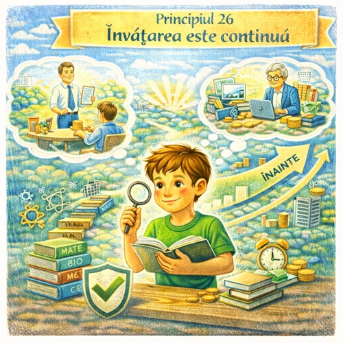 Acest principiu construiește flexibilitate și încredere în sine. Un copil care înțelege că învățarea este continuă va fi mai puțin temător în fața schimbărilor și mai capabil să își construiască o viață financiară stabilă și adaptabilă.