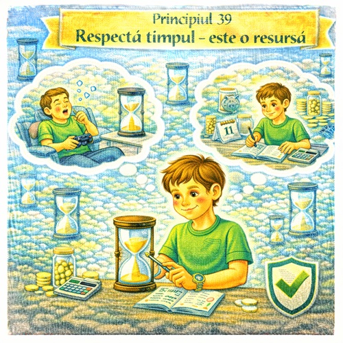 Acest principiu construiește disciplină și claritate. Un copil care învață să respecte timpul ca resursă va fi mai eficient, mai organizat și mai capabil să construiască valoare, atât financiar, cât și personal.