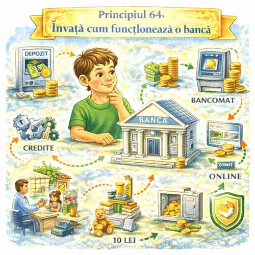 Acest principiu dezvoltă înțelegerea sistemelor financiare de bază. Un copil care învață cum funcționează o bancă va fi mai pregătit să gestioneze banii moderni și să ia decizii financiare informate și responsabile.
